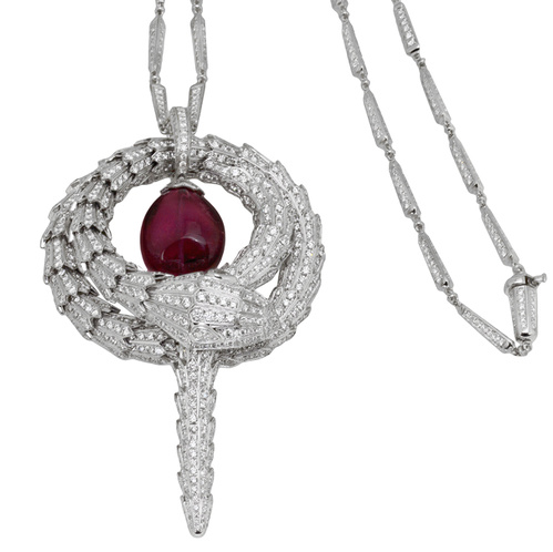 Presented at the Port du Cap d'Ail, Bulgari is exploring the many faces and nuances of Italian culture and landscapes through its new collection. Sapphires, rubies, amethyst cabochons and huge clutches of emeralds create necklaces, earrings, items that reminds us the Italy of the Borgias and Medici, but with its modern touch.